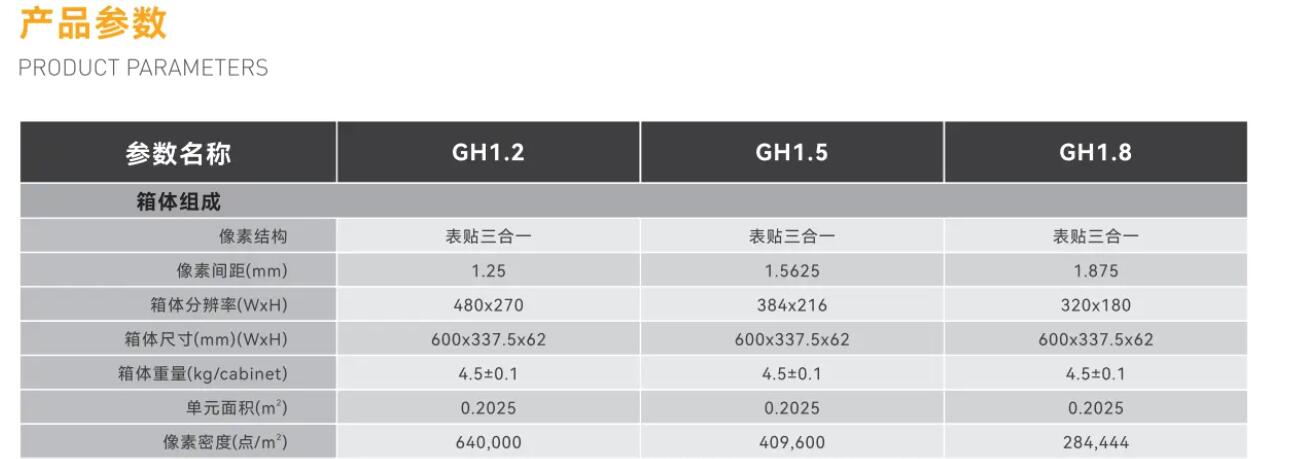 GH系列是-款標準1 6:9比例設計的室內高清全彩顯示屏,采用承重能力極強的碳纖維構,具有散熱性能卓越的特性,高灰階、高刷新率、高對比度的顯示效果。維護方便、快速,尤其適用于廣電、演播廳、影劇院等要求真實2K、4K、8K的16:9顯示尺寸場合。